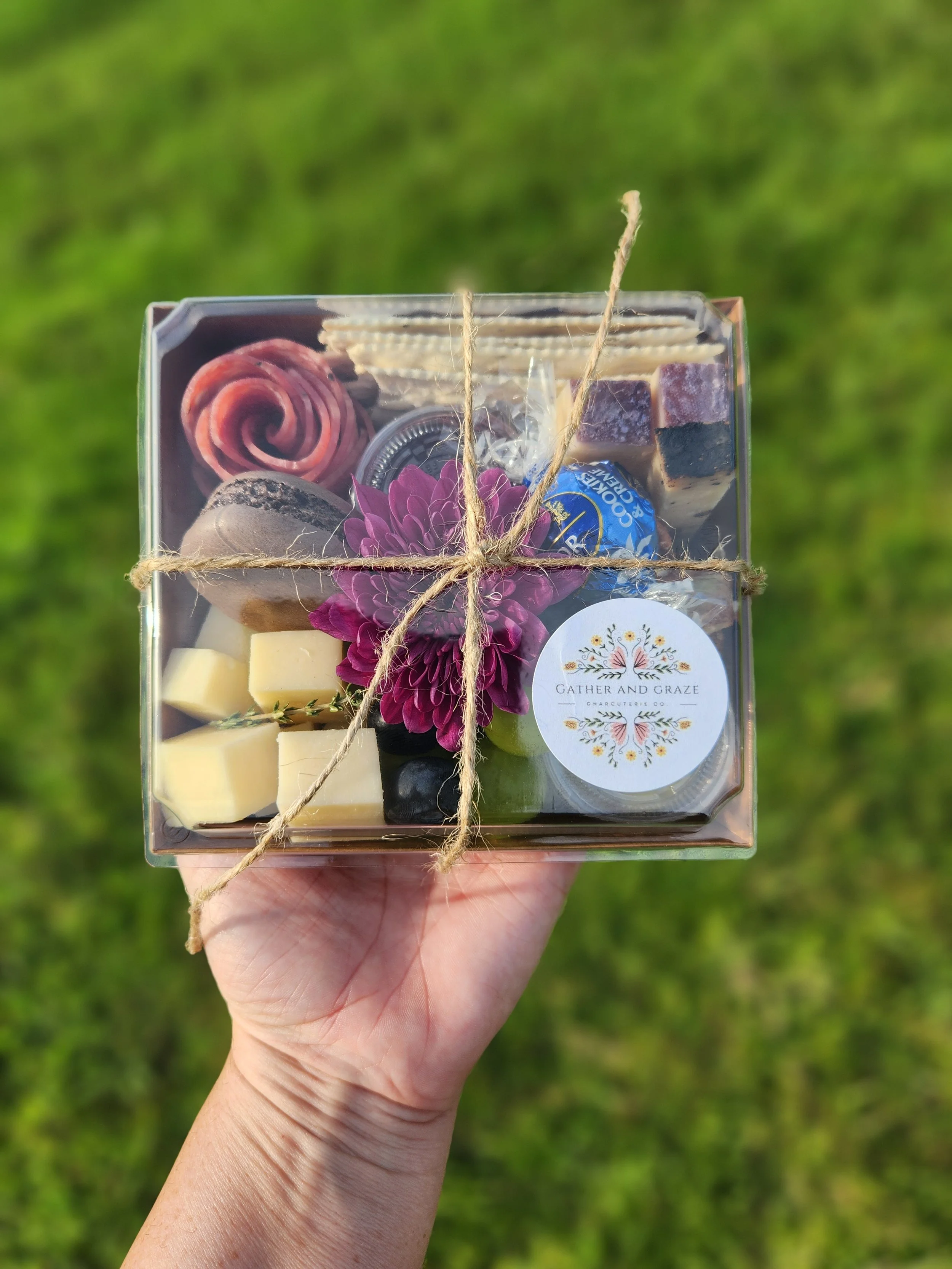 Categories: All Charcuterie Boards Grab and Go Boxes Charcuterie Cups Merch Gift Cards All | Charcuterie Boards | Grab and Go Boxes | Charcuterie Cups | Merch | Gift Cards | Charcuterie Boards from $50.00 Grab and Go Boxes from $12.00 Charcuterie Cups (Minimum 6 To Order) $10.00 Gather and Graze Merch $25.00 Gift Cards from $25.00